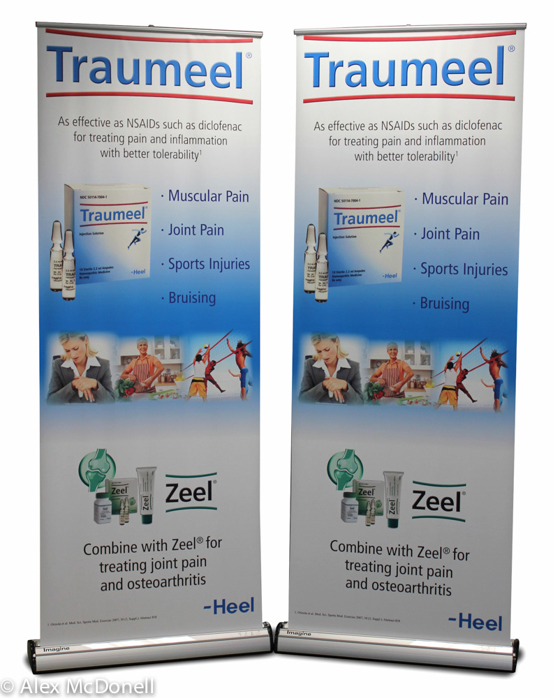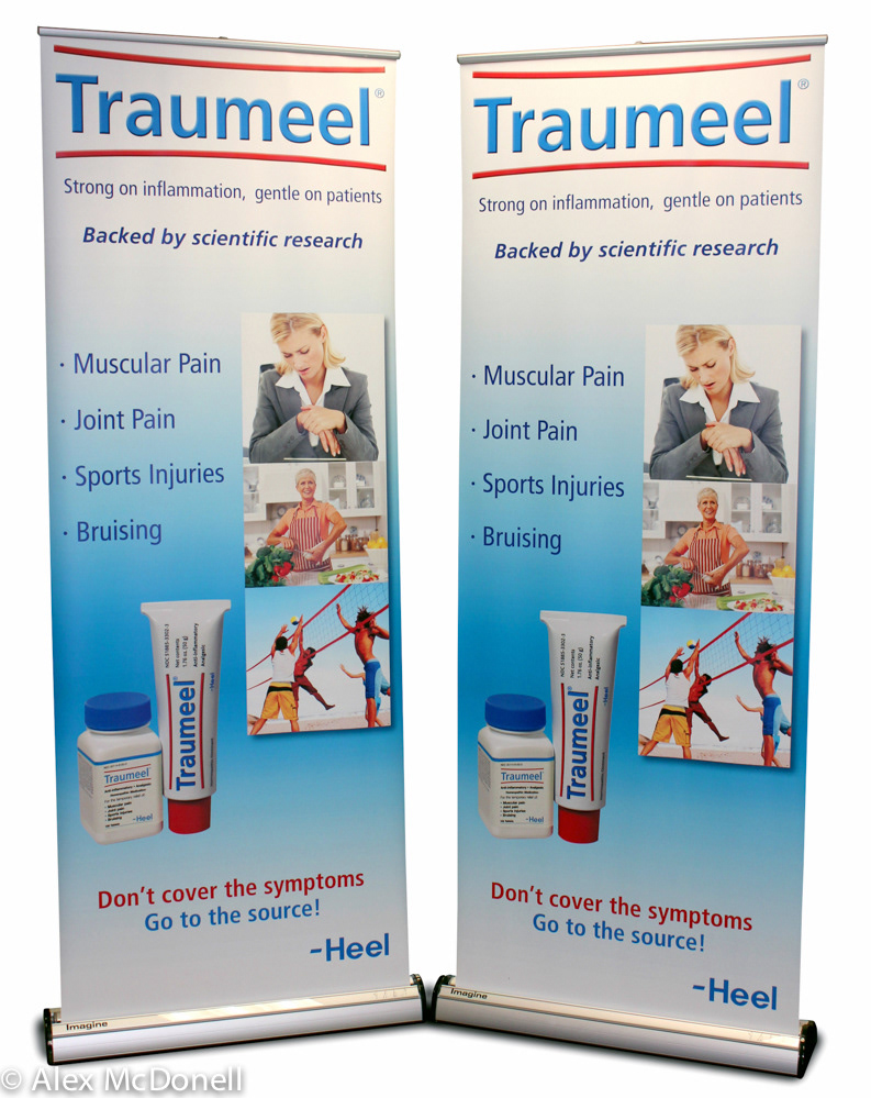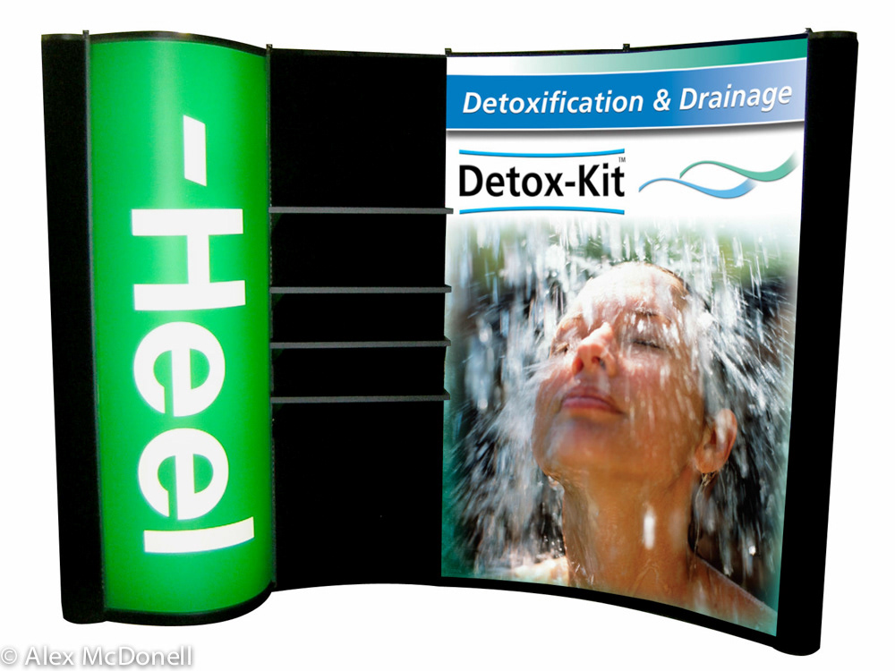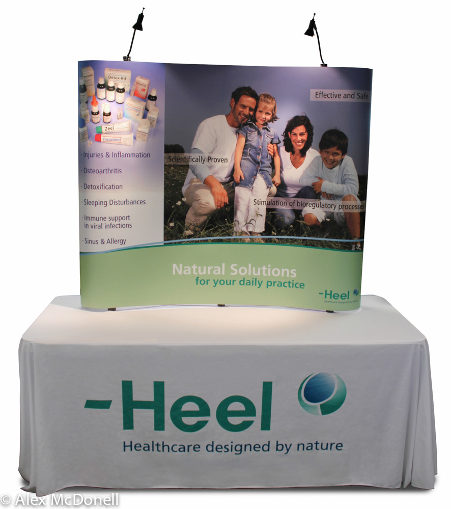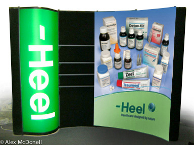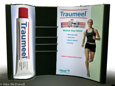 Exhibit designs including table top displays, floor displays and exhibition booth graphics