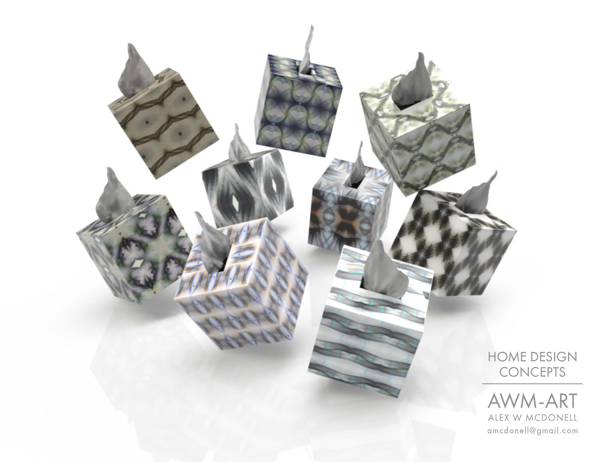 3D product design concepts using patterns created from my own abstract artwork.- Alex